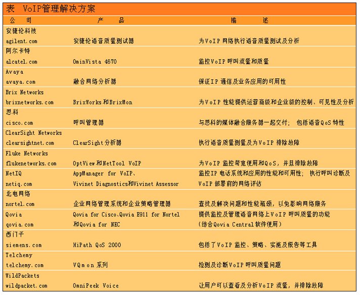 表 VoIP管理解決方案(點(diǎn)擊小圖看大圖)